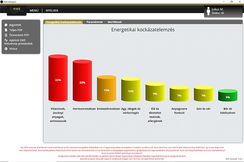 Az EWS Analyzer készülék/program használatával a pillanatnyi fizikai állapotunkat mérhetjük fel.